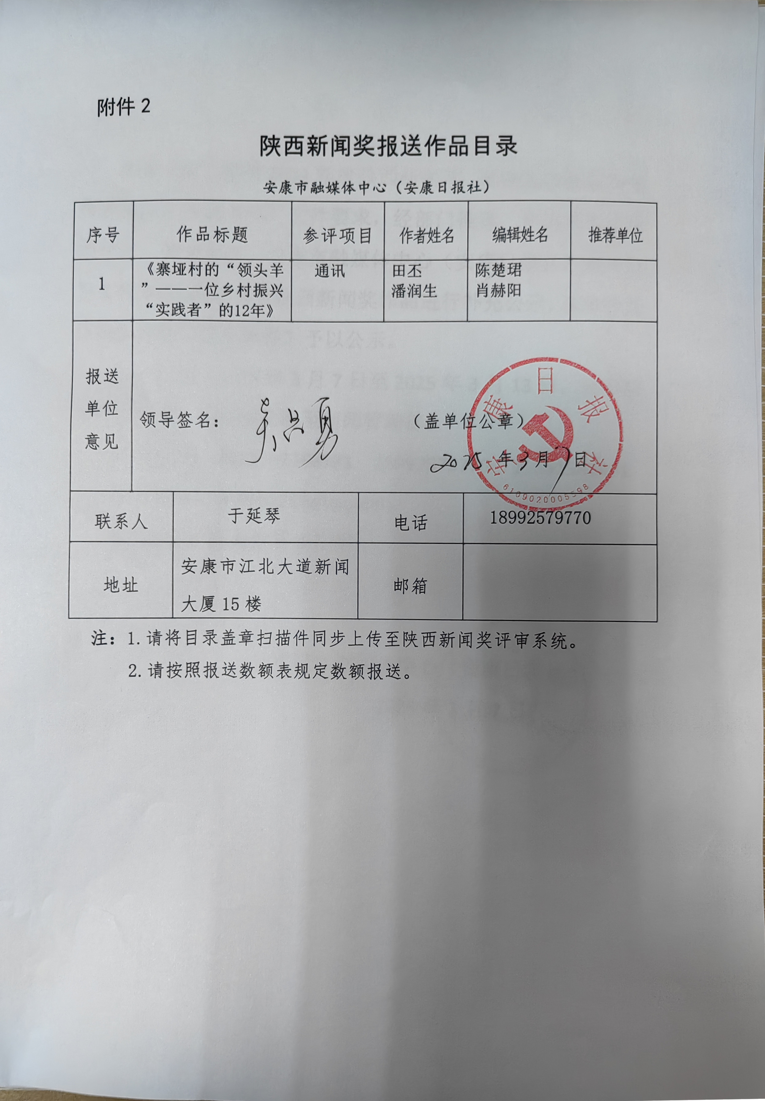 陜西新聞獎參評作品推薦表.rar