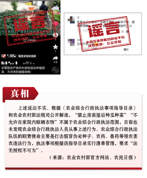 謠言5:“農(nóng)管”不讓村民種瓜種菜、在自家院子曬被子?