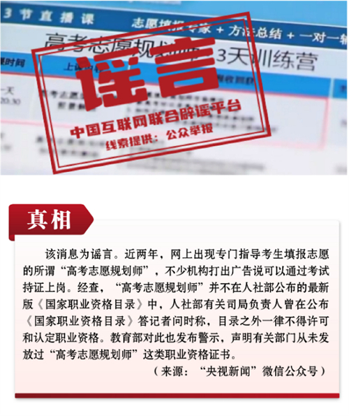 謠言3:培訓(xùn)3天就能拿到“高考志愿規(guī)劃師”證書(shū)上崗?
