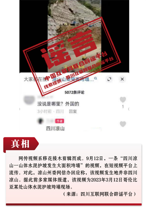 謠言7:四川涼山一山體護坡發(fā)生大面積垮塌?
