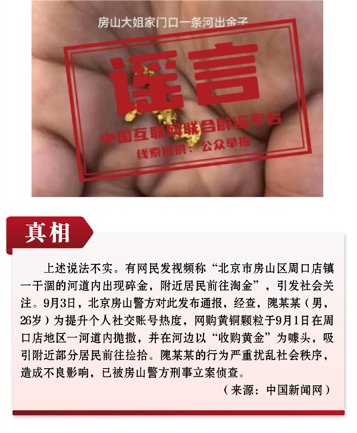 謠言4:北京市房山區(qū)一河道內驚現(xiàn)碎金?