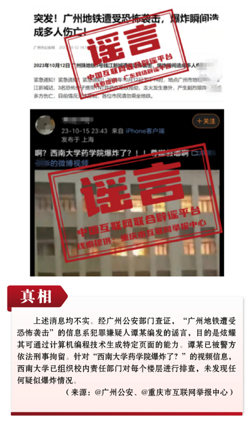 謠言8:廣州地鐵遭受恐怖襲擊?西南大學(xué)藥學(xué)院爆炸?