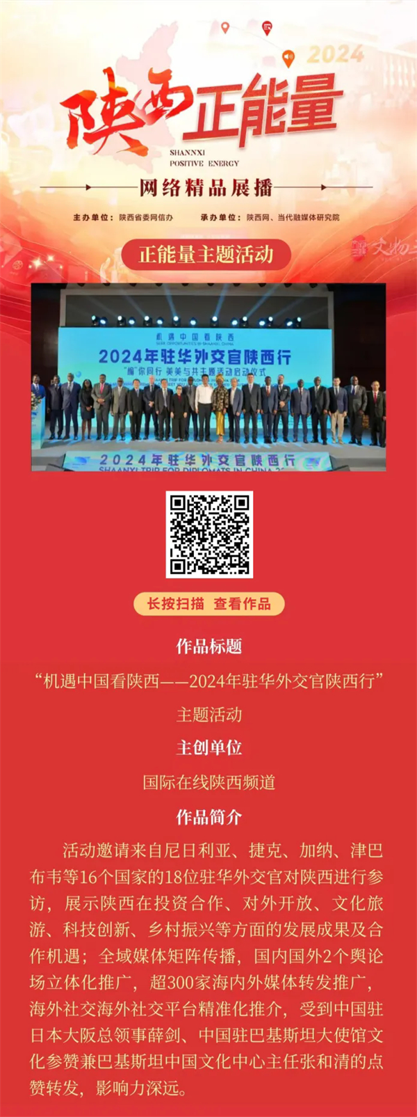 2024陜西正能量網(wǎng)絡精品展播丨正能量主題活動:機遇中國看陜西——2024年駐華外交官陜西行主題活動