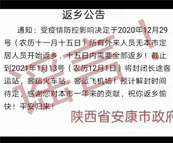 近日,有不法分子冒充安康市政府在網(wǎng)絡(luò)上發(fā)布《返鄉(xiāng)公告》,該公告內(nèi)容純屬捏造。
