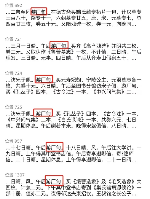 第三,雖然魯迅作為鐘愛(ài)琉璃廠舊書(shū)肆的文人,日記中自述經(jīng)常去琉璃廠,但“逛琉璃廠”并非魯迅的表達(dá)風(fēng)格,“游廠甸”“往琉璃廠”“至琉璃廠”才是魯迅的表達(dá)風(fēng)格。