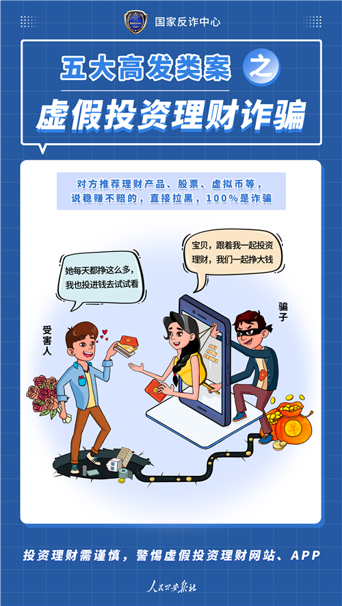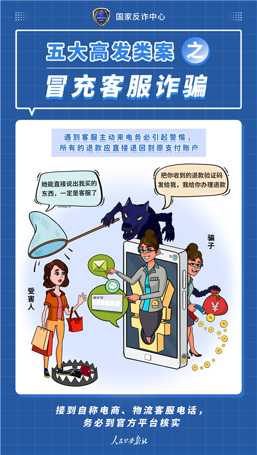 五大最高發(fā)類型的電信網(wǎng)絡(luò)詐騙海報(bào)