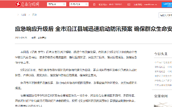 在災(zāi)難和事故報(bào)道中,安康新聞網(wǎng)秉承“人民至上、以人為本”理念,如在《應(yīng)急響應(yīng)升級(jí)后 全市沿江縣城迅速啟動(dòng)防汛預(yù)案 確保群眾生命安全》報(bào)道,重點(diǎn)聚焦應(yīng)急響應(yīng)升級(jí)后全市沿江縣城迅速啟動(dòng)防汛預(yù)案情況,確保人民群眾生命安全。同時(shí)安康新聞網(wǎng)還針對(duì)一些公共安全事件或突發(fā)事件,及時(shí)發(fā)布防御知識(shí)和相關(guān)科普內(nèi)容。