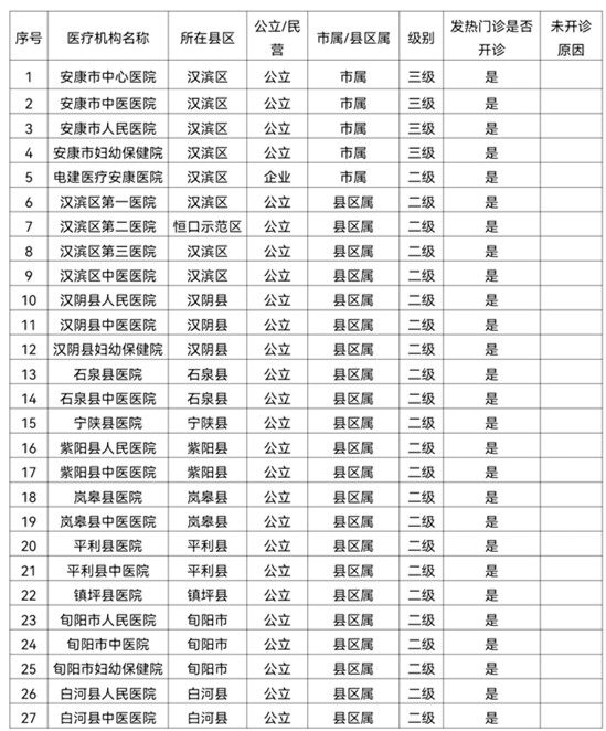 安康市二級以上醫(yī)療機(jī)構(gòu)發(fā)熱門診點(diǎn)位