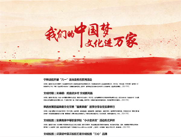 安康新聞網(wǎng)站普及優(yōu)秀文化,傳播科學(xué)知識,提升文化自信,開設(shè)“網(wǎng)絡(luò)中國節(jié)”多個傳統(tǒng)節(jié)日系列專題,根據(jù)節(jié)點設(shè)計發(fā)布海報、H5,開展線上活動。挖掘安康傳統(tǒng)文化,展現(xiàn)地方特色,組織承辦的“國風(fēng)·漢江辭匯”文化品牌活動,演出優(yōu)秀詩詞吟唱,對外精彩展示了以漢水文化為靚麗底色的安康地域文化之魂,全方位呈現(xiàn)了漢唐風(fēng)韻的藝術(shù)魅力和文化底蘊(yùn)。