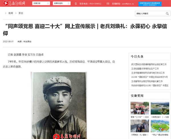 安康新聞網(wǎng)始終堅持傳達(dá)正確立場、觀點、態(tài)度,持續(xù)做好正能量典型宣傳,做有態(tài)度、有溫度的新聞精品,發(fā)布如《“同聲頌黨恩 喜迎二十大”網(wǎng)上宣傳展示 | 老兵劉煥禮:永葆初心 永擎信仰》《旬陽老黨員收集千余件紅色藏品》《活出尊嚴(yán)的120個生命》等優(yōu)質(zhì)稿件。