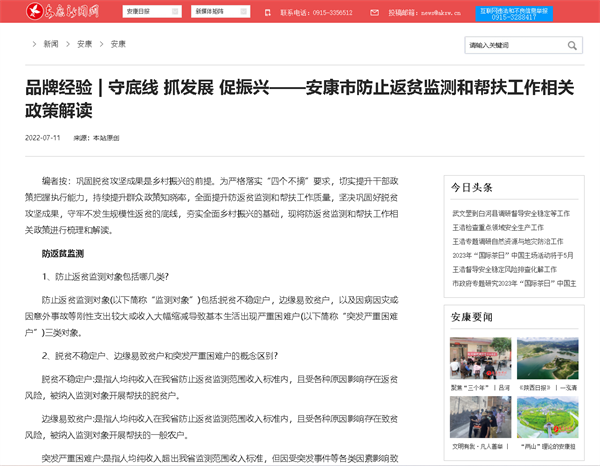 2022年,安康新聞網(wǎng)站準(zhǔn)確刊播政務(wù)消息,保證了政務(wù)消息、惠民政策消息及時準(zhǔn)確地傳播。發(fā)揮黨媒資源優(yōu)勢,準(zhǔn)確闡釋解讀市委、市政府的重要決策和惠民政策,刊出《我市9部門解讀宣傳9類44項政策》《守底線 抓發(fā)展 促振興——安康市防止返貧監(jiān)測和幫扶工作相關(guān)政策解讀》《安康出臺公積金階段性支持政策為企業(yè)和職工紓困解難》,從群眾關(guān)切入手,提升媒體服務(wù)質(zhì)量和為民服務(wù)意識。同時,搭建溝通平臺、反映百姓呼聲,及時發(fā)布動態(tài)信息以及醫(yī)療、出行、生活、辟謠等公共服務(wù)內(nèi)容,發(fā)揮主流媒體凝聚人心、推動發(fā)展、促進(jìn)和諧的作用。