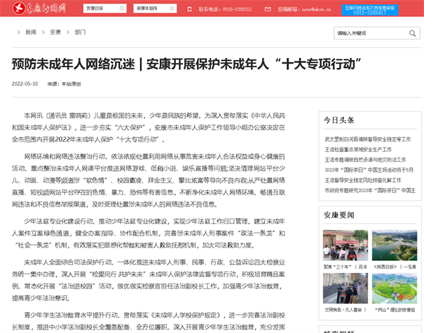 關(guān)注民生熱點,彰顯為民情懷。積極做好民生政策類宣傳報道,圍繞教育、醫(yī)療、就業(yè)、食品安全、養(yǎng)老等民生熱點,注重反映少數(shù)民族、婦女、兒童、老年人、殘疾人等意見呼聲,刊發(fā)了《預(yù)防未成年人網(wǎng)絡(luò)沉迷 | 安康開展保護(hù)未成年人“十大專項行動”》《民族團(tuán)結(jié)之花常開長盛》《寧陜:為癱瘓老人上門辦證 譜寫警民暖心故事》等報道。