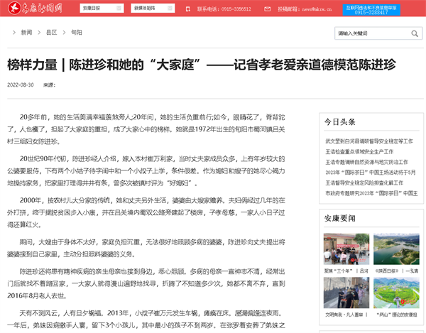 堅持以人為本報道理念,充分凸顯人文精神。報道《榜樣力量 | 陳進(jìn)珍和她的“大家庭”——記省孝老愛親道德模范陳進(jìn)珍》《安康市第三屆自強(qiáng)不息道德模范王庭德開展勵志宣講報告會》《孫自立:自強(qiáng)同奔共富路》等,啟迪思想,溫潤心靈,詮釋真善美。