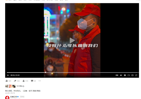 利用視頻號、抖音、微信等矩陣平臺,采編發(fā)布《“下”到一線 “沉”出擔(dān)當(dāng)》《干部下沉“疫線” 志愿服務(wù)綻光彩》《致敬!堅守防疫一線的最美逆行者》等一批鮮活的現(xiàn)場短視頻新聞20余件,生動展示抗疫一線的管控動態(tài)、志愿服務(wù)、文明實踐以及廣大干群奮戰(zhàn)一線的典型事跡等;同時精心策劃制作《微火成炬 向光而行》《致敬“逆行者” 安康加油!》《眾志成城 攜手抗疫——市民說防疫》等宣傳片,及其他科普性短視頻8件,文圖聲視融合,發(fā)揮跟帖評論作用,開展轉(zhuǎn)發(fā)、評論、點贊等微互動,積極營造強(qiáng)信心、暖人心、聚民心的網(wǎng)上輿論氛圍,凝聚起共克時艱的精神動力。