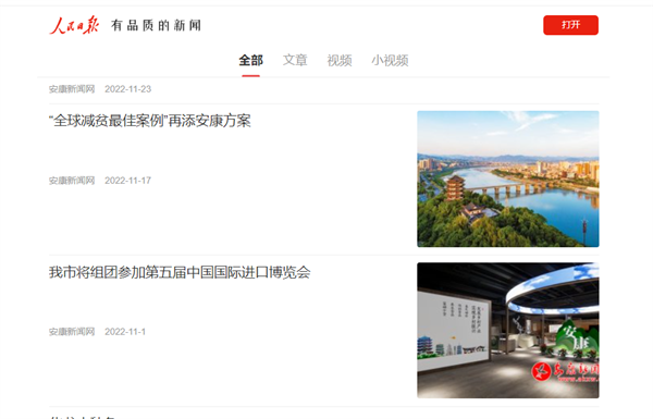 安康新聞網(wǎng)分別入駐人民網(wǎng)人民視頻、央視新聞等平臺,不斷推送原創(chuàng)優(yōu)質(zhì)內(nèi)容,《“全球減貧最佳案例”再添安康方案》《我市將組團(tuán)參加第五屆中國國際進(jìn)口博覽會》等一批稿件,極大地提升了安康城市形象,促進(jìn)對外宣傳;二十大召開前后,發(fā)布推送中央媒體、省級權(quán)威媒體最新報道,網(wǎng)站運(yùn)營的安康日報微信視頻號轉(zhuǎn)載推送中國共產(chǎn)黨國際形象網(wǎng)宣片《CPC》等中央媒體重要視頻10余件,傳遞安康好聲音,講好中國故事,促進(jìn)文化交流。
