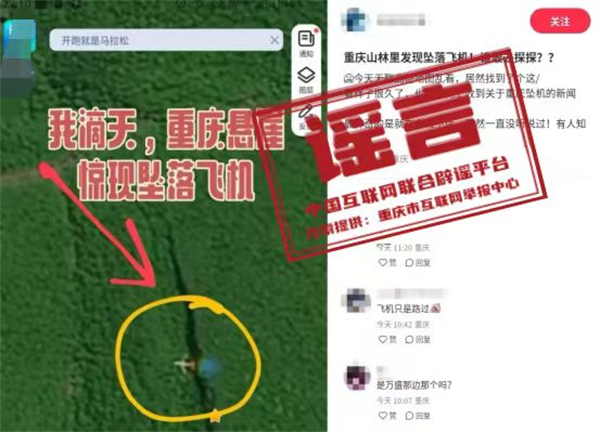 謠言:重慶山林里驚現(xiàn)墜落飛機?