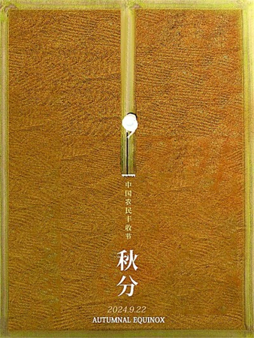 秋分時(shí)節(jié),是農(nóng)作物豐收的重要季節(jié),田間地頭一派農(nóng)忙景象。自2018年起,我國將每年秋分設(shè)立為“中國農(nóng)民豐收節(jié)”,圖④作品即聚焦這一主題,整體采用俯視角度,畫面中央一名農(nóng)民正在稻田中勞動,稻田的金黃顏色象征著豐收與希望,充滿視覺沖擊力,展現(xiàn)出大地滿載收獲的美好景象。