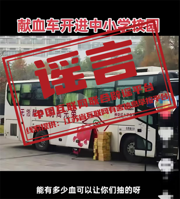 真相:近日,有網(wǎng)民發(fā)布配圖為南京紅十字血液中心獻血車的視頻,稱“獻血車直接開進中小學校園”“那中小學生十幾歲能有多少血可以讓你們抽呀”。經(jīng)南京市衛(wèi)健部門核實,網(wǎng)傳信息系謠言。該視頻配圖實為2022年南京紅十字血液中心在南京林業(yè)大學組織獻血的照片。根據(jù)《中華人民共和國獻血法》規(guī)定,國家提倡18周歲至55周歲的健康公民自愿獻血。南京紅十字血液中心不接受18歲以下未成年中小學生獻血。(來源:“南京網(wǎng)絡辟謠”微信公眾號)