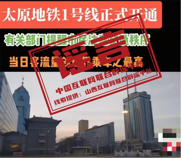 真相:近日,有網(wǎng)民發(fā)布短視頻稱“太原地鐵1號線正式開通,有關部門提醒市民注意交通秩序,當日客流量創(chuàng)世界乘車之最高”。經(jīng)與當?shù)亟煌ú块T核實,此信息內(nèi)容不實。該網(wǎng)民行為違反《網(wǎng)絡信息內(nèi)容生態(tài)治理規(guī)定》第六條第八款規(guī)定,網(wǎng)信部門已將線索移交公安部門進一步調(diào)查處理。(來源:“山西網(wǎng)絡舉報”微信公眾號)