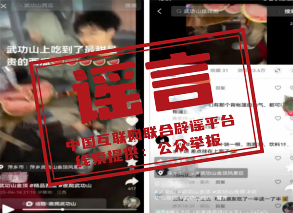 真相:近日,有網(wǎng)民在短視頻平臺發(fā)布“江西萍鄉(xiāng)武功山景區(qū)存在‘一錘子買賣’‘天價西瓜’”的視頻,引發(fā)社會關(guān)注。經(jīng)查,視頻中 “賣西瓜” 的男子實為旅行社組織的武功山景區(qū)游客,途中接受視頻發(fā)布者邀請參與拍攝了一段“賣西瓜”的視頻。該西瓜系旅行社同行人員所帶,并非如視頻所說在景區(qū)內(nèi)購買,景區(qū)也不存在網(wǎng)傳的“18元泡面”、“240元西瓜”等情況。目前,公安機(jī)關(guān)已對造謠者作出行政拘留十日的行政處罰。(來源:“公安部網(wǎng)安局”微信公眾號、“江西網(wǎng)警”微信公眾號)