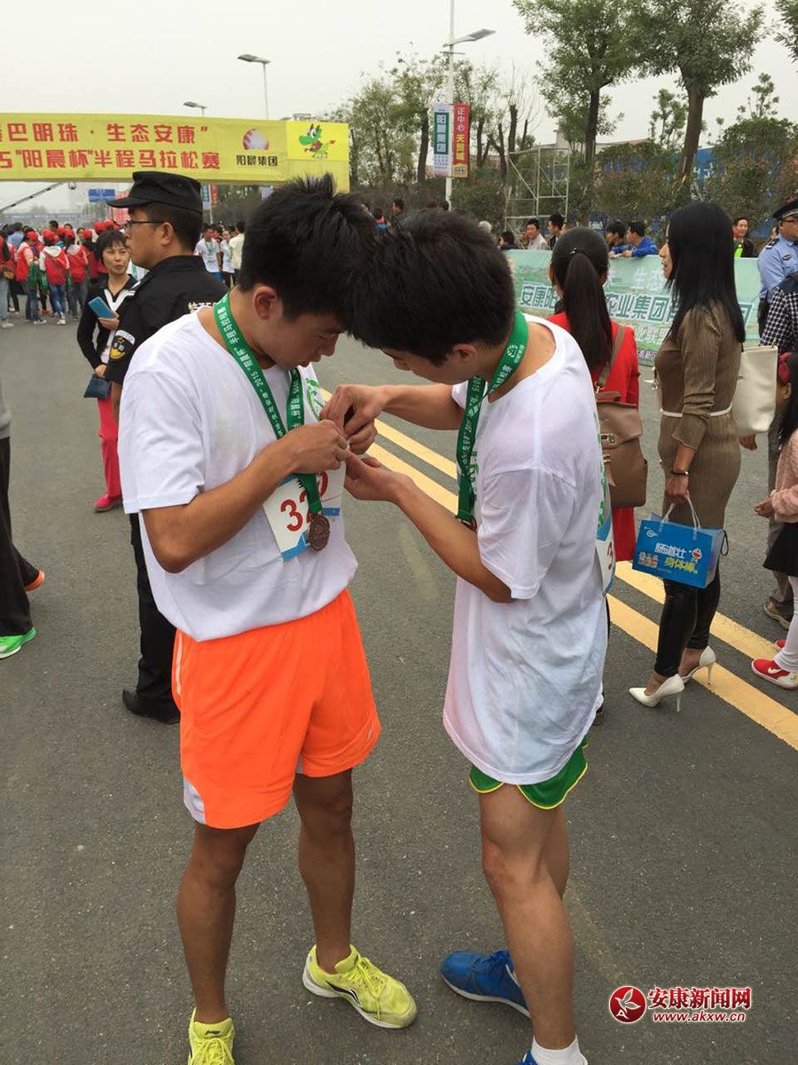 參加10公里比賽的運動員已經(jīng)沖刺抵達終點