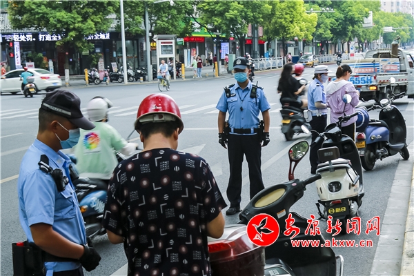 8 月1 日,交警中隊派員在城區(qū)十字路口,檢查違法違紀車輛。(李春江)