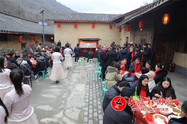 ▲ 1月18日,漢濱區(qū)譚壩鎮(zhèn)開展購年貨、吃皰湯、喝臘八粥、送春聯(lián)活動,現(xiàn)場熱鬧非凡。吳亞君 攝