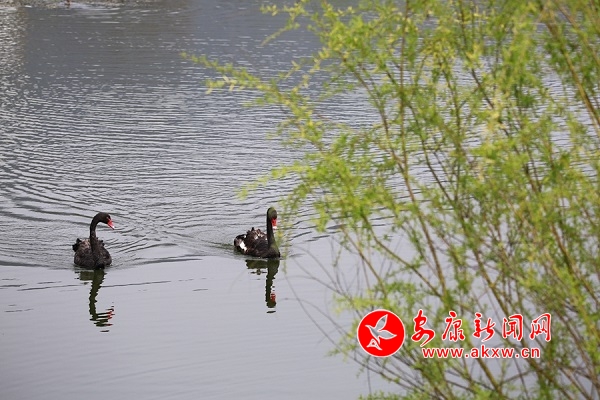 8、兩只黑天鵝在湖面上快樂(lè)游蕩.jpgqrc安康新聞網(wǎng)