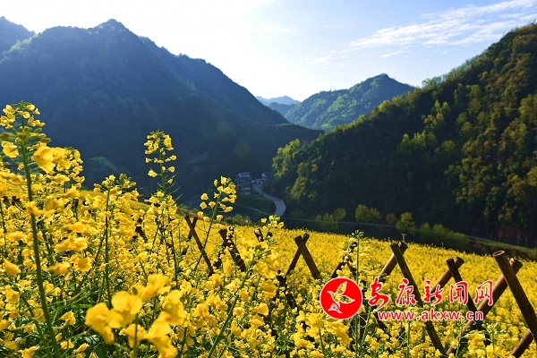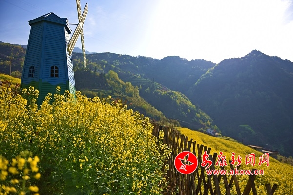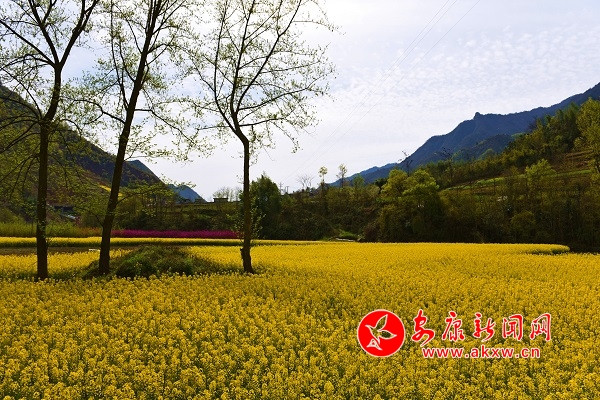 春暖花開時節(jié),嵐皋縣南宮山鎮(zhèn)迎來了一撥又一撥游客。金黃色的油菜花開放在錯落有致的山邊梯田里,在暖暖的春風中隨風搖曳,令人陶醉、沁人心脾,仿佛走進金色花海。(李輝苗/攝)HpQ安康新聞網(wǎng)