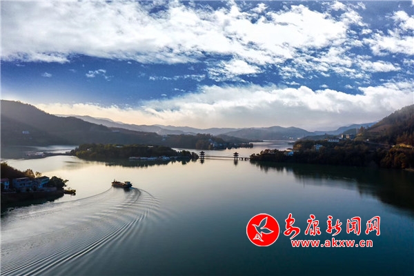 深秋時(shí)節(jié),蔚藍(lán)的天空一塵不染,晶瑩明澈,朵朵云霞映照在碧波如洗的瀛湖水間,分外絢麗。nmc安康新聞網(wǎng)
