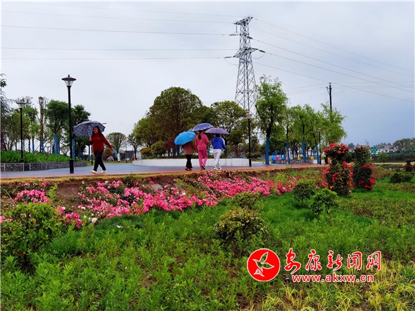 5月14日,漢陰縣迎來了2022年立夏后的首場(chǎng)降雨。在漢陰縣花月灣迎賓公園,鮮花盛開,鋪滿路邊。市民們行走在雨中,呼吸著春雨的氣息,聞著鮮花四溢的香味,鍛煉著身體,心曠神怡。(圖文/林愛銘)g8h安康新聞網(wǎng)