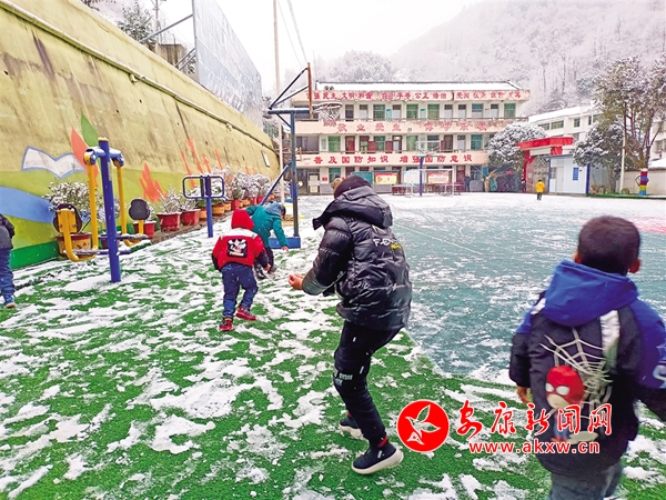 石泉云霧山鎮(zhèn)中心小學(xué)迎來初雪 譚相華 攝CwF安康新聞網(wǎng)