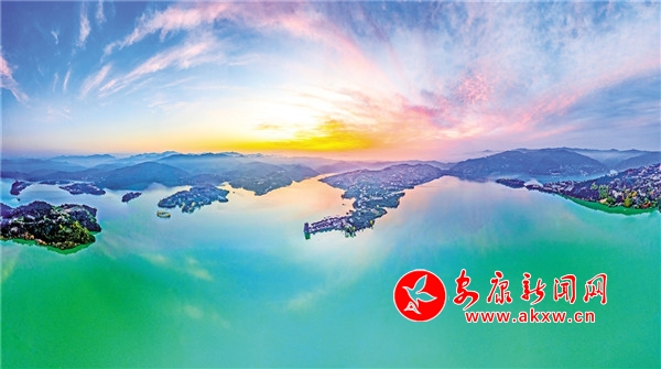 瀛湖是中國(guó)獨(dú)特的山水風(fēng)光之湖。秦嶺與巴山夾峙護(hù)佑,造就了如畫的湖,形成了夢(mèng)幻的景。四時(shí)風(fēng)光,不遜西湖,不輸洱海,亦可自比千島湖。瀛湖冬景中蘊(yùn)含著春華與秋色,初冬游覽瀛湖,遠(yuǎn)能看青山不墨千秋畫,近可聽流水無(wú)弦萬(wàn)古琴。山起西北下東南,江自天邊出河谷,形成了地形上的小氣候,冬日里應(yīng)是天寒地凍,但瀛湖一地,冬雨過(guò)后,山谷風(fēng)來(lái),云興霞蔚,日影扶疏?瓷,群山層林盡染,如調(diào)色板傾覆其上,一坡樹枝隨風(fēng)變,斑斕色彩比花美,游人盛贊“此景只應(yīng)天上有,人間能得幾回見”。觀水,湖面寬闊清凈,風(fēng)起波瀾,水光瀲滟,舟行碧波,人在畫中。晨起湖面輕霧籠罩,是海上瀛洲的景象;正午云光投射湖面,天空之鏡如夢(mèng)幻般瑰麗;傍晚行至水窮處,坐看云起,就有了迷人的霞光,或金黃或橘紅,給湖面一層層染色,與山林應(yīng)和,便是紅黃翠綠清且淺,萬(wàn)般顏色不爭(zhēng)春了。
