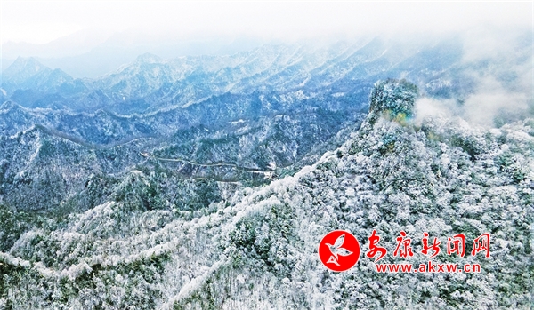 其境內(nèi)溝壑縱橫,山巒跌宕,植被豐富。近日,受降溫天氣影響,化龍山雨雪紛飛,一座座山峰白雪皚皚,一棵棵大樹玉樹瓊枝,雪絨、冰晶、冰凌隨處可見,晶瑩剔透,構(gòu)成了一幅絕美的自然畫卷。