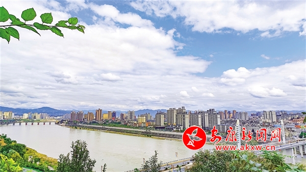秋日的一江兩岸和藍(lán)天白云相映成趣,呈現(xiàn)出青山綠水的生態(tài)美景。李向軍 攝