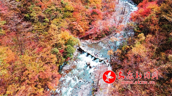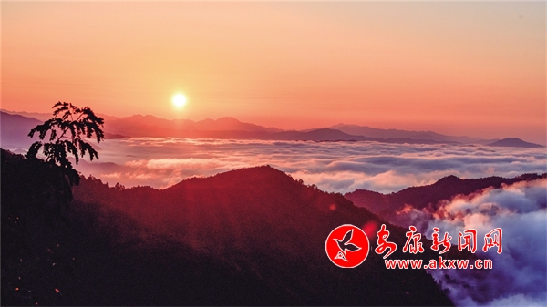 石泉縣城關(guān)鎮(zhèn)楓樹(shù)村秋韻正濃,山川色染繽紛,與日出晨霧交相輝映。董長(zhǎng)松 攝