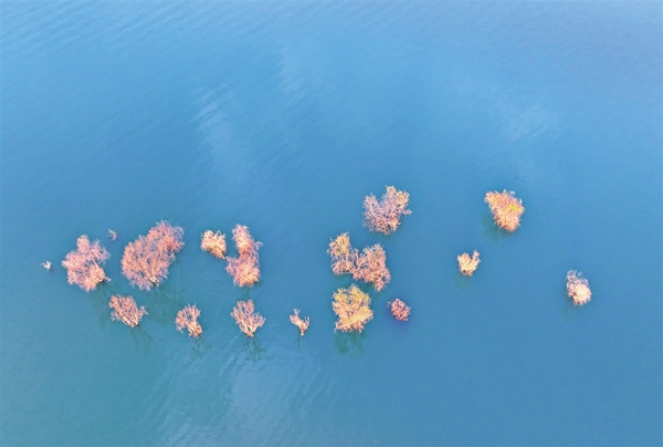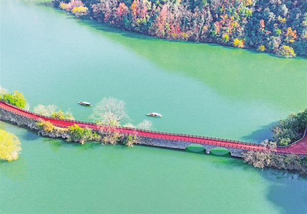 該景區(qū)有遠(yuǎn)觀景點(diǎn)織女石、鳥(niǎo)語(yǔ)花香玉興島、愛(ài)情主題金螺島、休閑勝地翠屏島等三島一遠(yuǎn)觀景點(diǎn)。以游船聯(lián)絡(luò)水上交通,“行船向三島,鷗鷺共遠(yuǎn)近”,冬日里的瀛湖更是給游客展現(xiàn)出一幅浪漫、詩(shī)意、氤氳的唯美畫(huà)卷。(李成寶 文/圖)