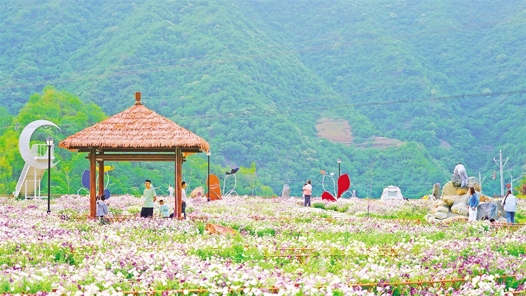 5月的白河,青山如黛,綠意蓬勃。乘車沿著縣城二級路走進(jìn)位于構(gòu)朳鎮(zhèn)涼水村的百福園花園,眼前驟然鋪開一幅色彩斑斕的畫卷。牽;ㄈ绮噬±劝惆菏,小雛菊似亭亭玉立舞者般輕盈,格;ㄈ缪┯蛳勺影愀蓛羲匮牛悍紶幤G間,將鄉(xiāng)村田園的質(zhì)樸與浪漫詮釋淋漓盡致。草坪野餐、放風(fēng)箏,露天營地等娛樂項(xiàng)目吸引了眾多游客紛至沓來。 (通訊員 周驍)