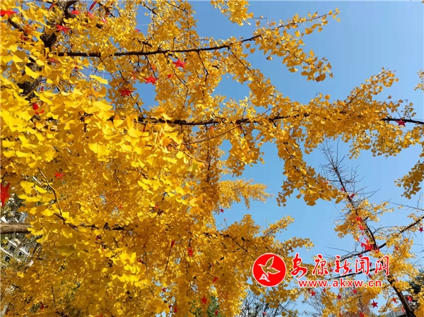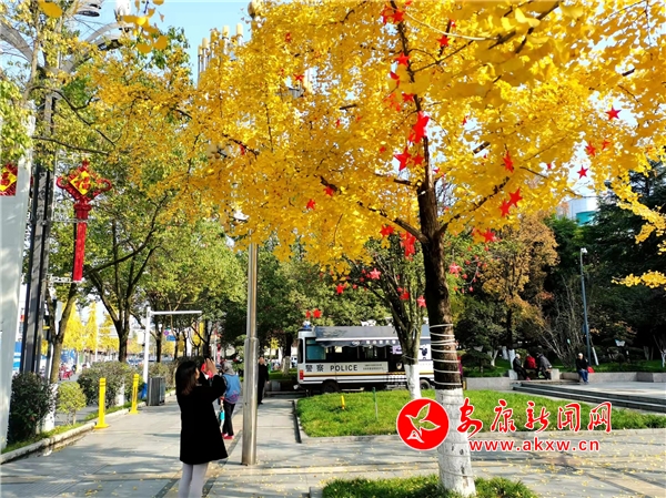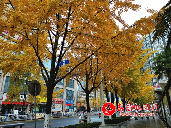 冬日暖陽(yáng),城區(qū)環(huán)城南路銀杏樹(shù)披上金色的盛裝。(陳榮斌 攝 )