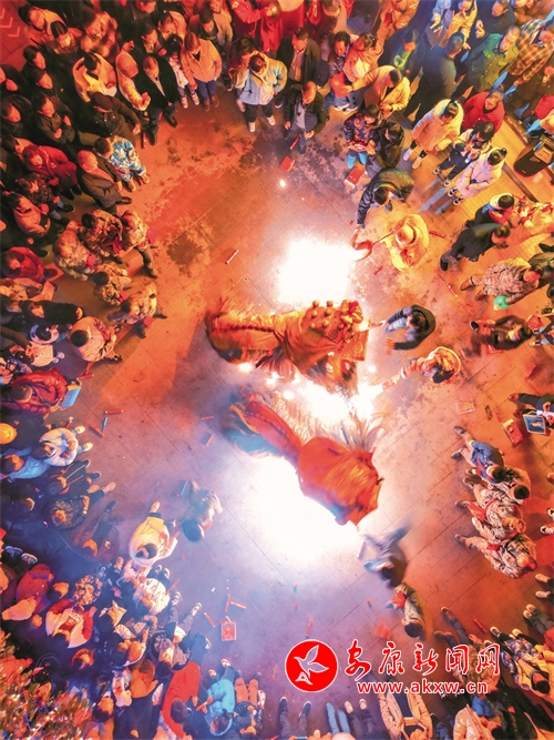 2月16日,在石泉縣秦巴風(fēng)情園景區(qū),當(dāng)?shù)孛耖g藝人的舞龍舞獅表演,吸引了眾多市民和游客觀看欣賞。許兵 攝EVM安康新聞網(wǎng)