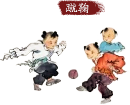 蹴鞠,又名“蹋鞠”、“蹴球”、“蹴圓”、“筑球”、“踢圓”等,“蹴”有用腳蹴、蹋、踢的含義,“鞠”最早系外包皮革、內(nèi)實米糠的球。因而“蹴鞠”就是指古人以腳蹴、蹋、踢皮球的活動,類似今日的足球。據(jù)史料記載,早在戰(zhàn)國時期中國民間就流行娛樂性的蹴鞠游戲,而從漢代開始又成為兵家練兵之法,宋代又出現(xiàn)了蹴鞠組織與蹴鞠藝人,清代開始流行冰上蹙鞠。因此,可以說蹴鞠是中國古代流傳久遠、影響較大的一朵體育奇葩。