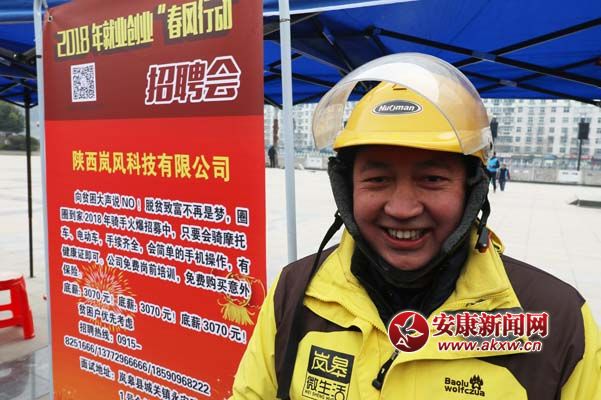 2月2日,胡延軍在嵐皋縣就業(yè)創(chuàng)業(yè)“春風行動”招聘會現(xiàn)場應聘合適的工作崗位。張昊 攝 換上工作服,胡延軍笑得合不攏嘴。張昊 攝安康新聞網(wǎng)訊(通訊員 張昊)2月2……
