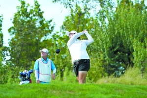 馮珊珊在比賽中揮桿。(孫嘉暉 攝)