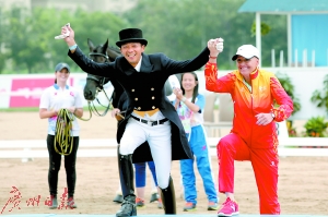 2001年九運(yùn)會至今,廣東馬術(shù)隊(duì)在每屆全運(yùn)會上都有2枚金牌入賬,這段時間也是拜里亞爾森執(zhí)教廣東隊(duì)的時期,她也和廣東隊(duì)的老將新兵建立了親密的友誼。本屆全運(yùn)會,拜里亞爾森和弟子兩次站上最高領(lǐng)獎臺,收獲了盛裝舞步團(tuán)體和個人2枚金牌,這也是她帶隊(duì)史上第一次。廣東馬術(shù)隊(duì)時隔8年問鼎盛裝舞步團(tuán)體賽,賽后,老將黃焯欽以手掩面、失聲痛哭。拜里亞爾森走上前去,撫摸著戰(zhàn)馬,安慰他!拔业攘颂昧。”黃焯欽說著,與拜里亞爾森緊緊擁抱在一起。