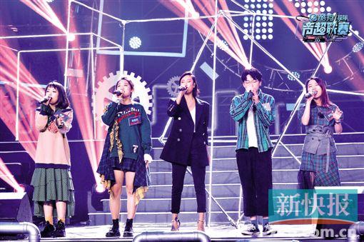 當晚的比賽,就像一場混搭版的演唱會。一開場,星海音樂學院、浙江傳媒學院、四川傳媒學院、中國音樂學院、重慶大學五強戰(zhàn)隊就合體演唱主題曲《冒險時代》拉開決賽序幕,之后五強戰(zhàn)隊分別帶來了自己的表演,并向?qū)、人氣、媒體、制作人四大通道發(fā)起挑戰(zhàn)。