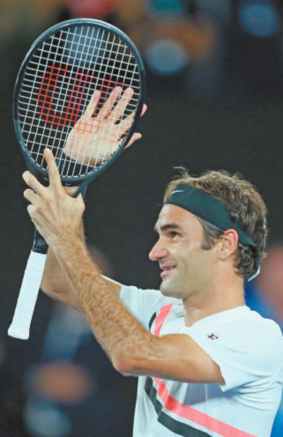 | 1月28日,費(fèi)德勒賽后向觀眾致意。 |