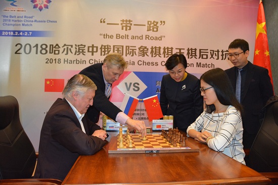 人民網(wǎng)哈爾濱2月5日電(管若寒)今天下午,“一帶一路”2018中俄國際象棋棋王棋后對抗賽在哈爾濱打響。世界國象女子第一人侯逸凡對陣國象傳奇卡爾波夫,這一不同年齡不同性別的頂級對抗賽吸引了眾多的關注。四輪過后,侯逸凡一勝一和兩負,以1.5-2.5的比分暫時落后于俄羅斯前棋王卡爾波夫。