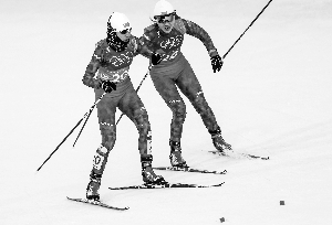 2月21日,平昌冬奧會(huì)越野滑雪女子團(tuán)體短距離自由技術(shù)半決賽在阿爾卑西亞滑雪中心進(jìn)行。由池春雪和李馨組成的中國隊(duì)以17分35.94秒的成績排名B組第九無緣決賽。圖為池春雪(右)與李馨在半決賽中。 本報(bào)特派記者 魏征攝