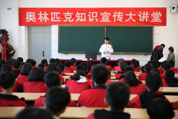 崇禮一中的學(xué)生們在奧林匹克知識(shí)宣傳大講堂上學(xué)習(xí)奧林匹克知識(shí)