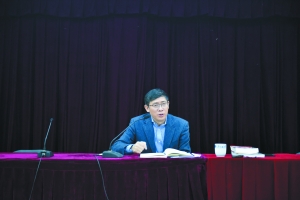 周進強為國家舉重隊講黨課。
